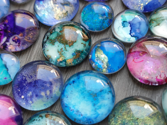 Handmade glass pebbles/ cabochons, ideal embellishments for mixed media/ scrapbooking projects