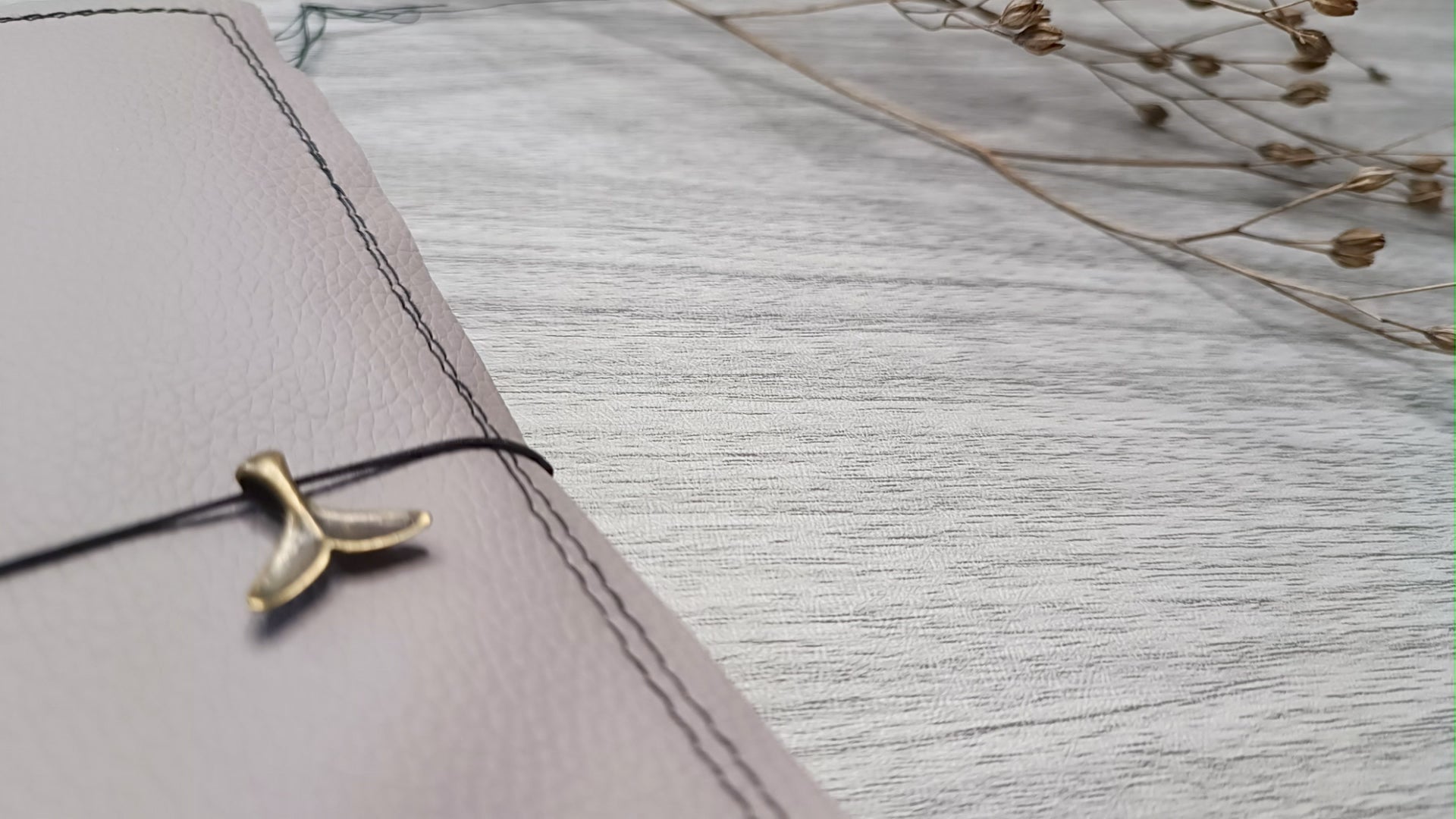 Here I am- butterfly art journal - entirely handmade, with leather-like cover and watercolor paper (300g, cold press) inside (one side grainy, other smooth). I come with elastic band and a charm.