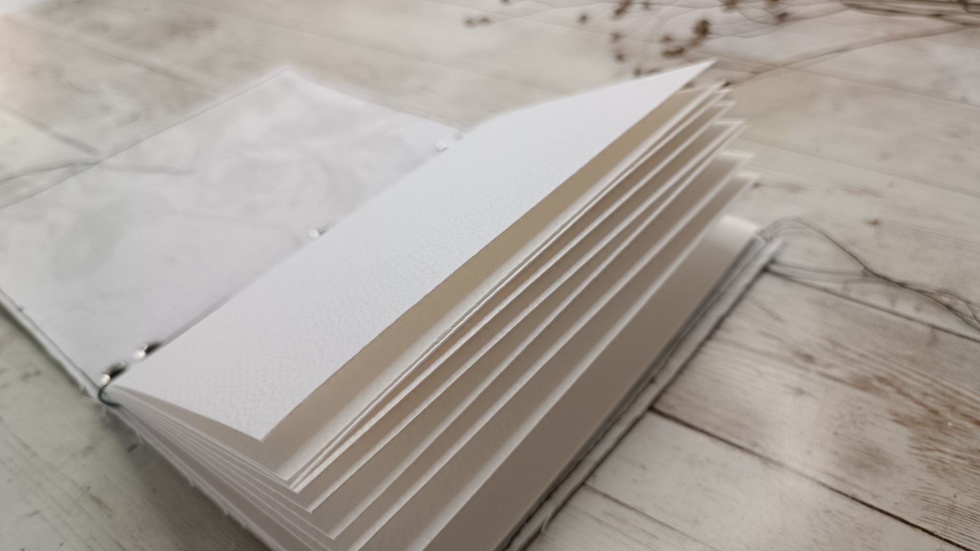 The essence of a butterfly book is the ability to take out the pages at any moment, work with them on flat surface, arrange them to your liking inside and of course- add more of them.