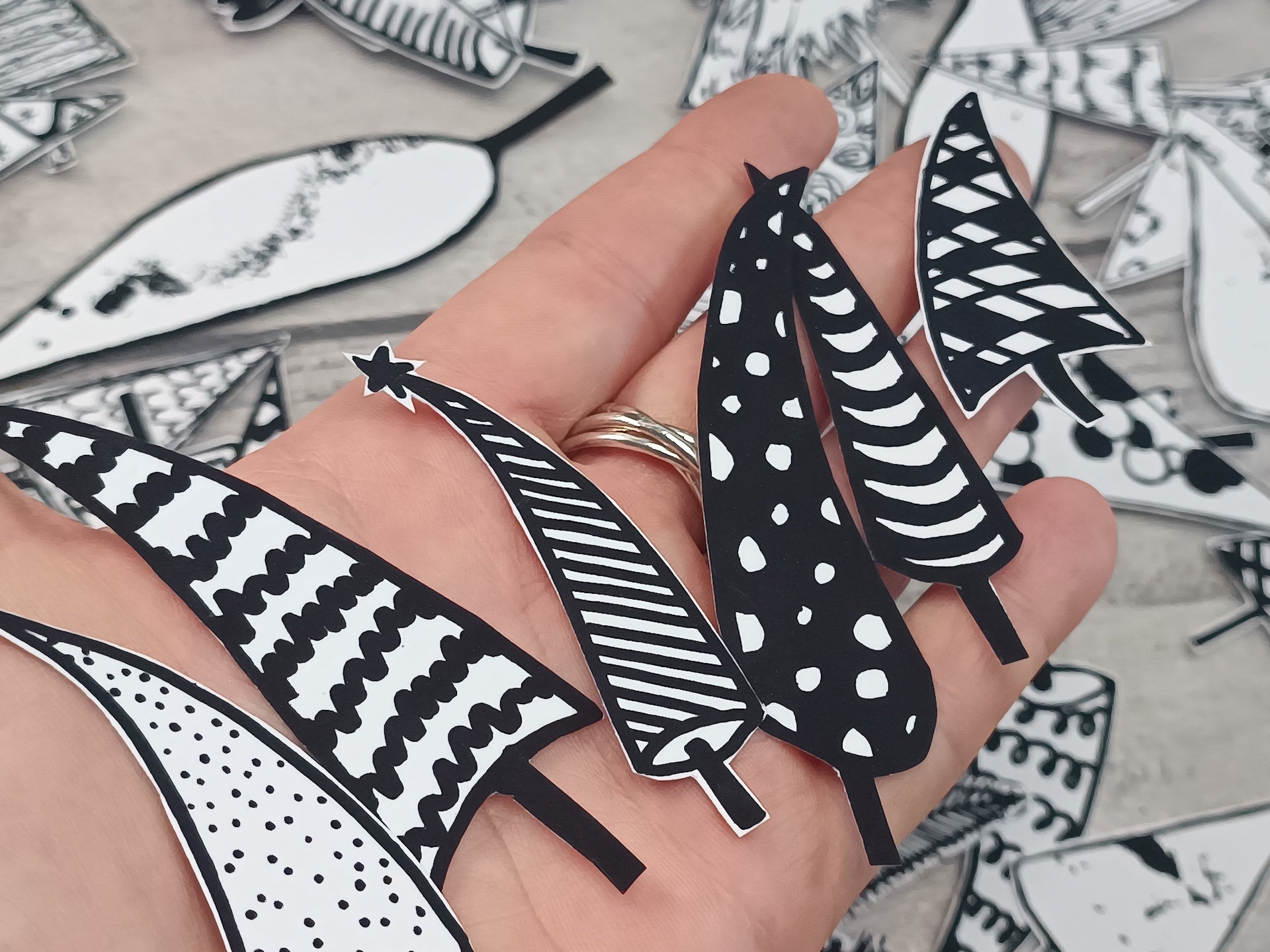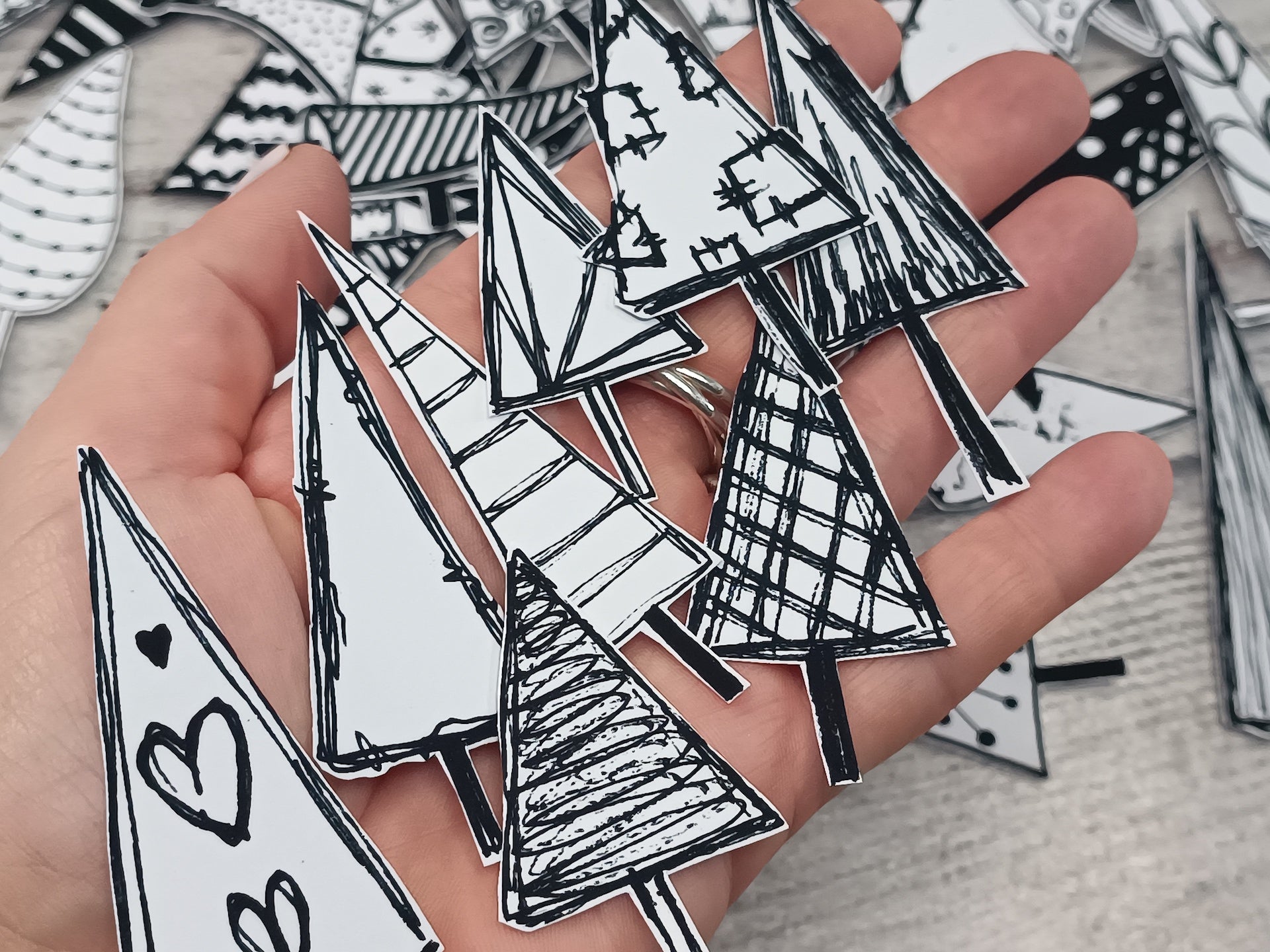 Here are my hand drawn digital Christmas Trees, ready to print and work with.