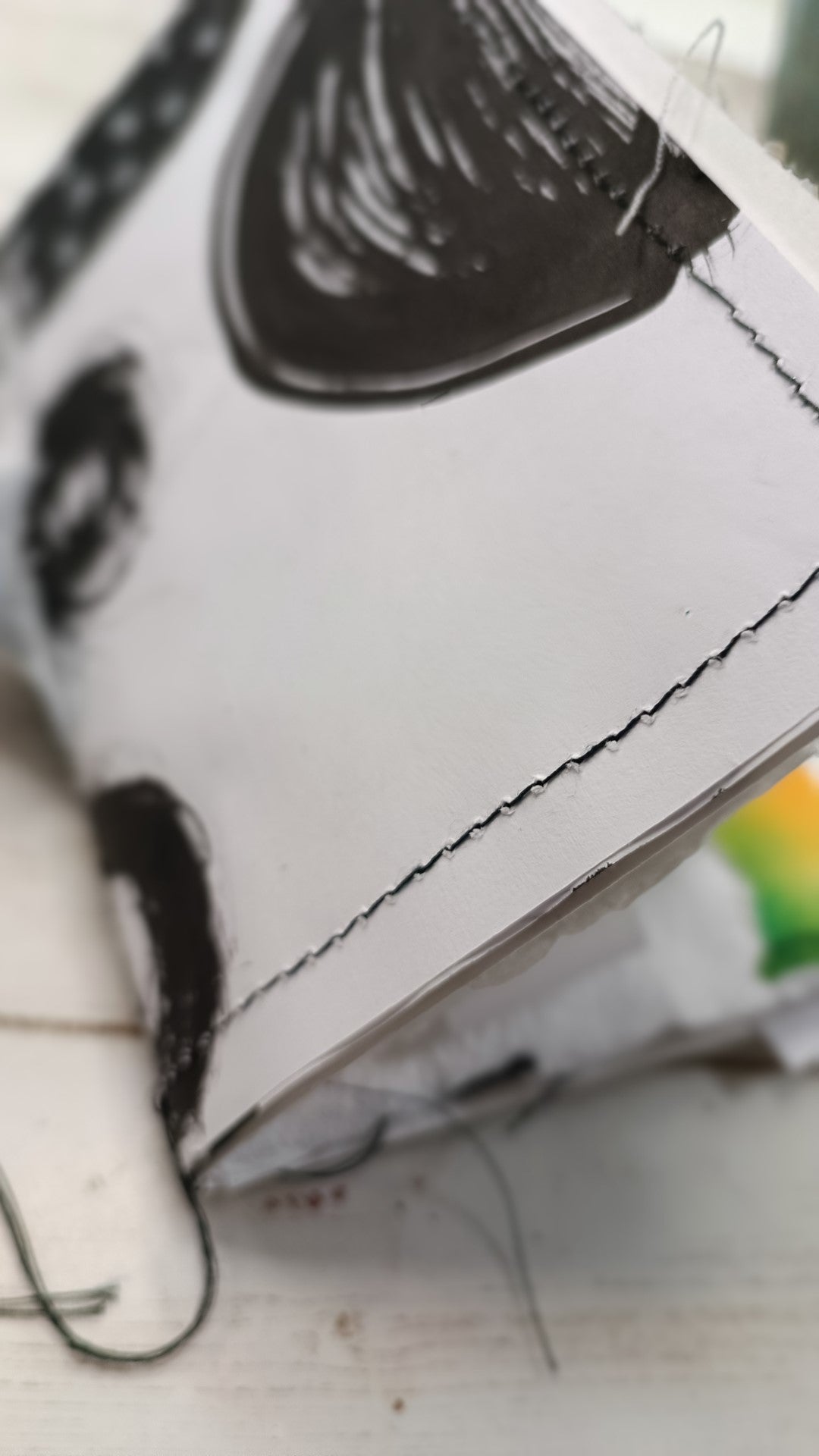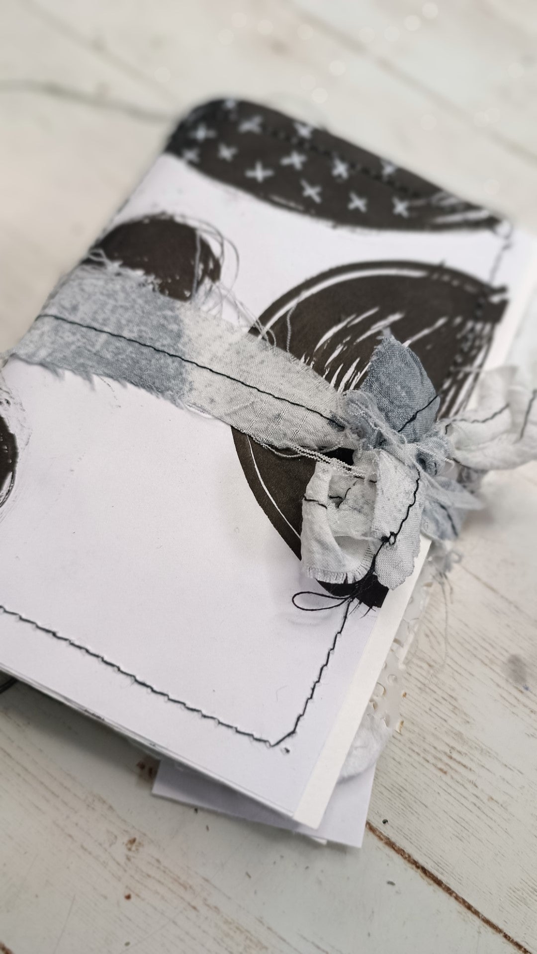 Handmade art/junk journal with personalised, sawn papers and paper covers.