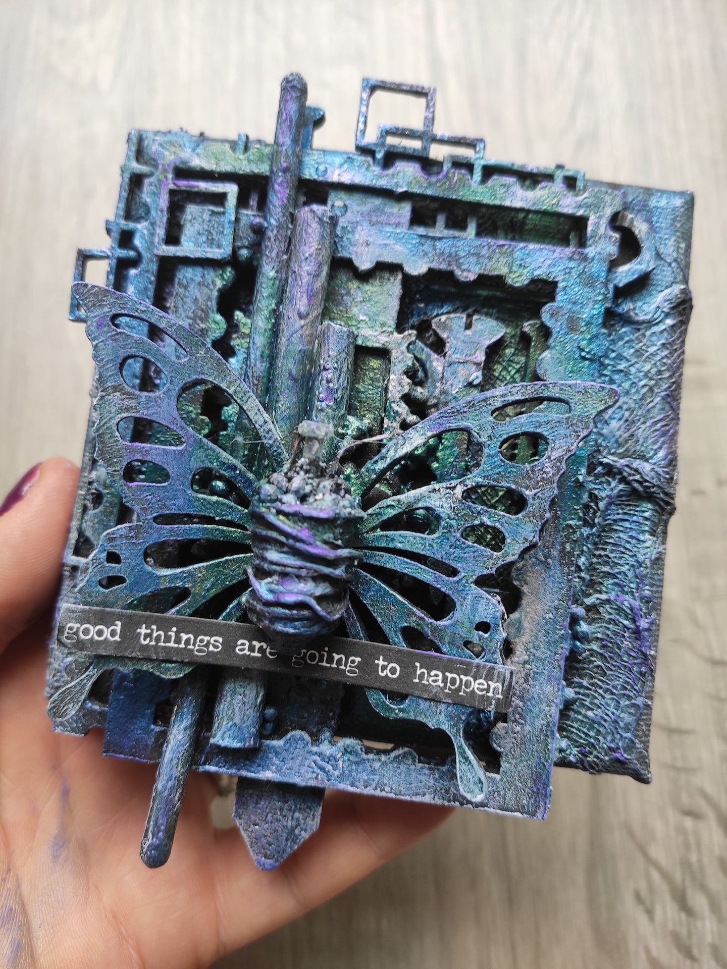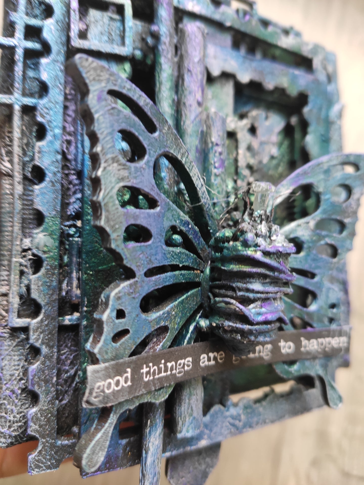 The body of the butterfly is a broken light bulb, which was totally an accident but one of my best ones ever! I wanted to throw the bulb out, but then I discover that the glass broke clean and the wires which are in the inside of it can work now as butterfly's antenae. Love happy accidents and I was thinking you may love this story as well ;)