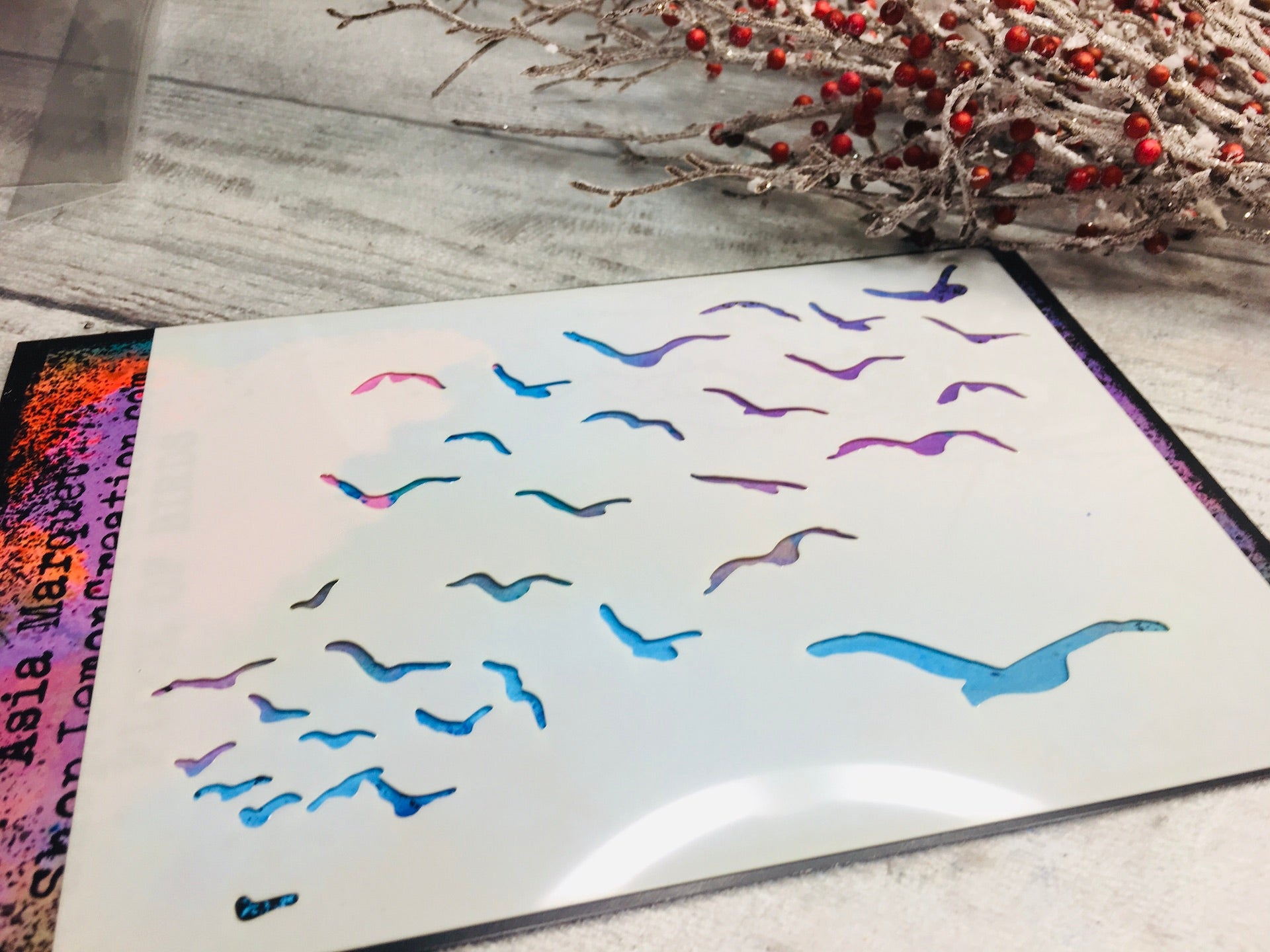 Mixed media stencil- FLOCK OF BIRDS