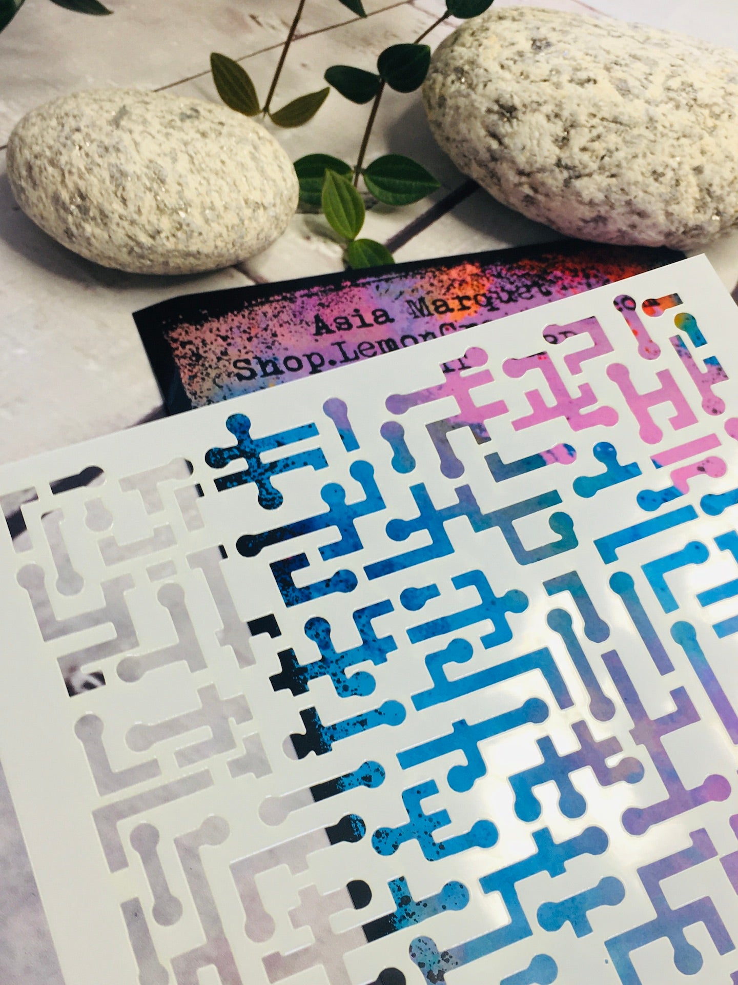 Mixed media/ art journaling/ scrapbooking stencil of my design. Mylar 350 microns. Very sturdy. Great to use with inks, paints and mixed media mediums (cream paste, gesso, grit paste etc). Easy to clean.