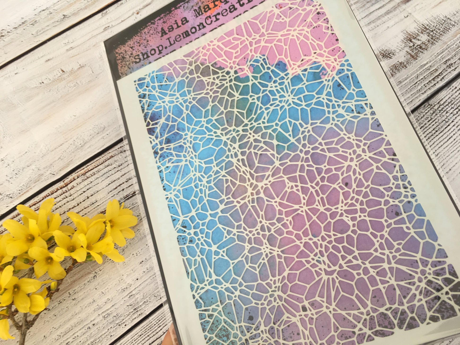 Mixed media/ art journaling/ scrapbooking stencil of my design. Mylar 350 microns. Very sturdy. Great to use with inks, paints and mixed media mediums (cream paste, gesso, grit paste etc). Easy to clean.