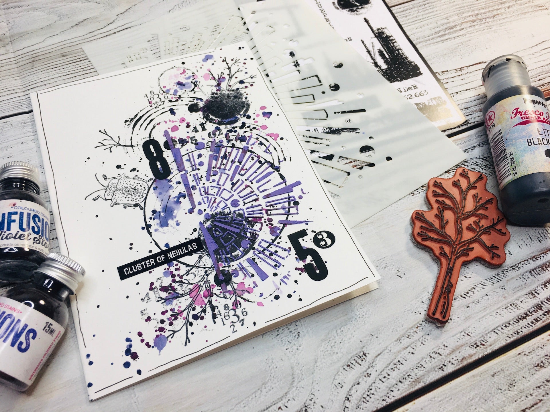 Mixed media/ art journaling/ scrapbooking stencil of my design. Mylar 350 microns. Very sturdy. Great to use with inks, paints and mixed media mediums (cream paste, gesso, grit paste etc). Easy to clean.