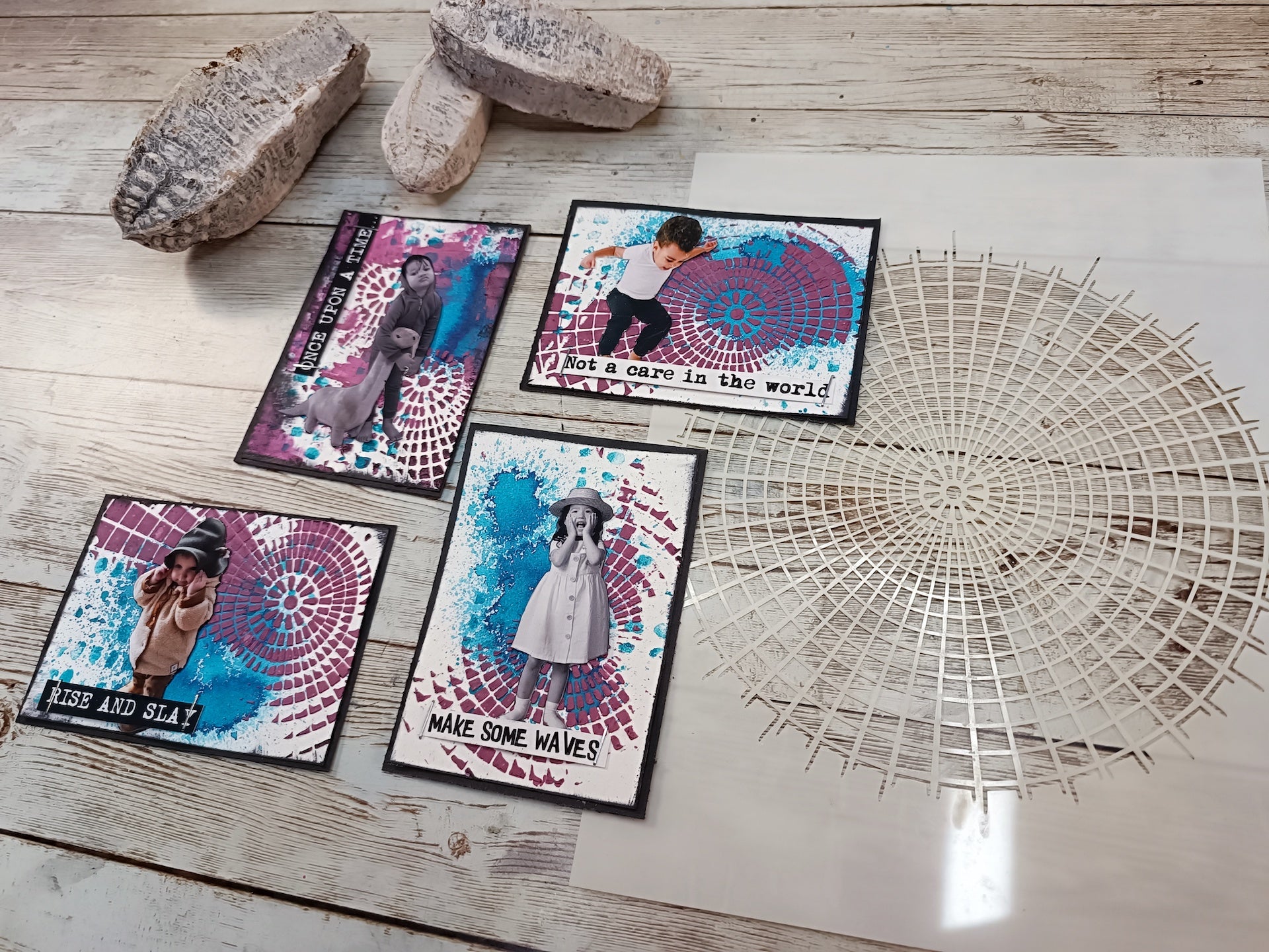 Mixed media/ art journaling/ scrapbooking stencil of my design. Mylar 350 microns. Very sturdy. Great to use with inks, paints and mixed media mediums (cream paste, gesso, grit paste etc). Easy to clean.