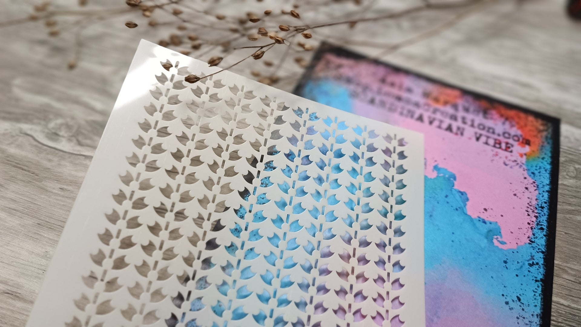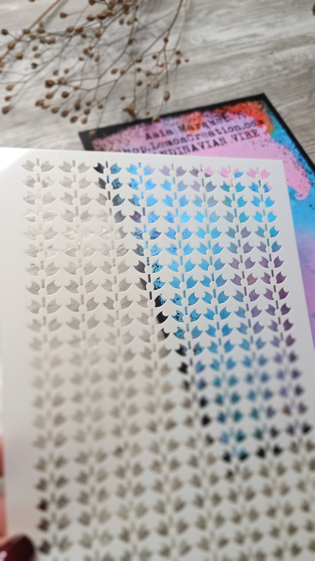 Mixed media/ art journaling/ scrapbooking stencil of my design. Mylar 350 microns. Very sturdy. Great to use with inks, paints and mixed media mediums (cream paste, gesso, grit paste etc). Easy to clean.