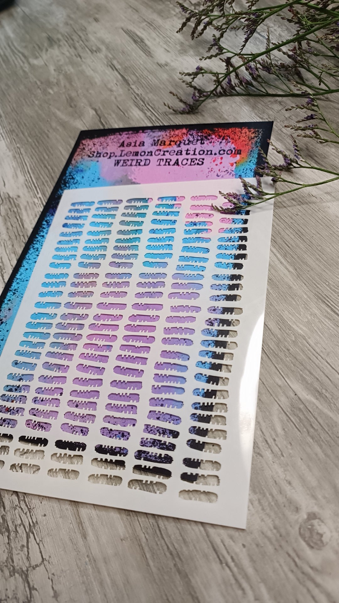 Mixed media/ art journaling/ scrapbooking stencil of my design. Mylar 350 microns. Very sturdy. Great to use with inks, paints and mixed media mediums (cream paste, gesso, grit paste etc). Easy to clean.