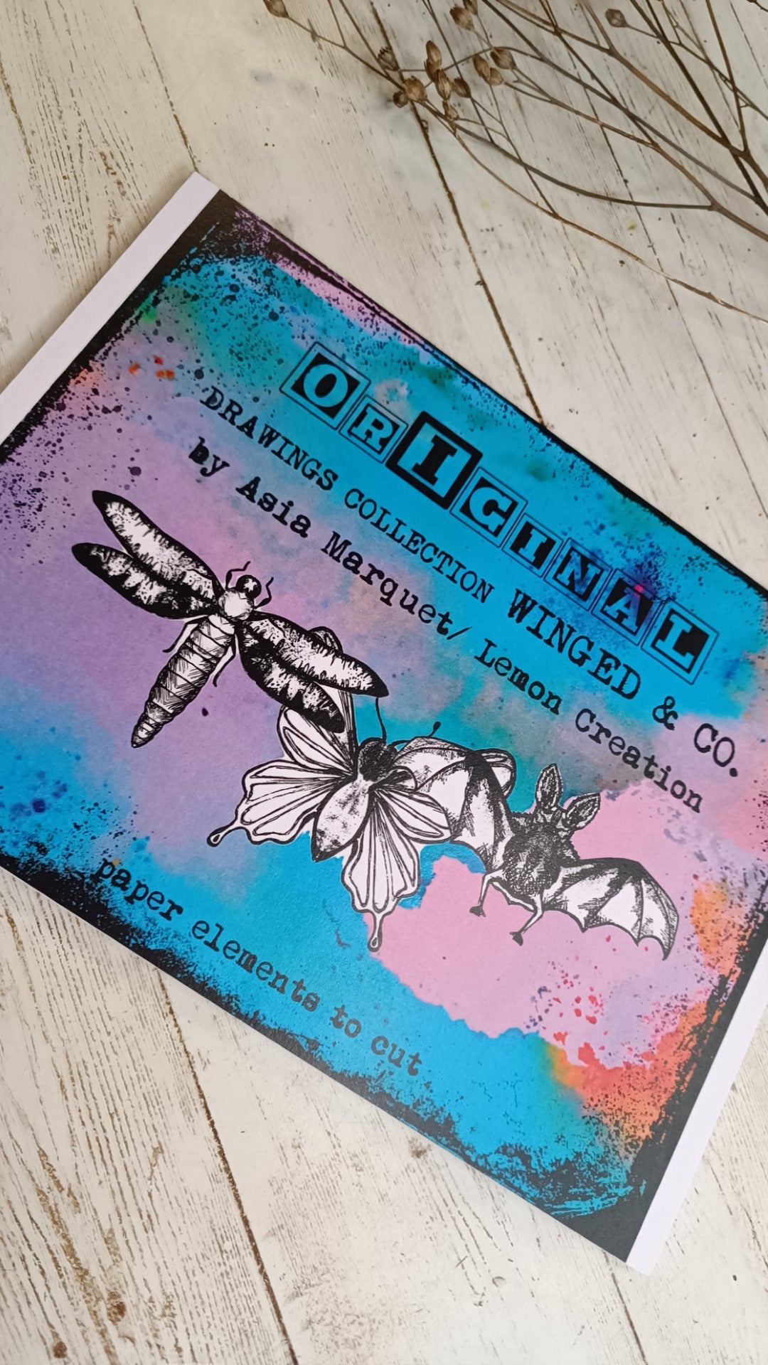 Book is printed on 200g paper, so the elements are sturdy enough to be fussy cut and put straight on your projects. I also played a little with the sizes, so they can match perfectly either ATC or art journals. You can also use few of the same objects in one project, with different colors or sizes.